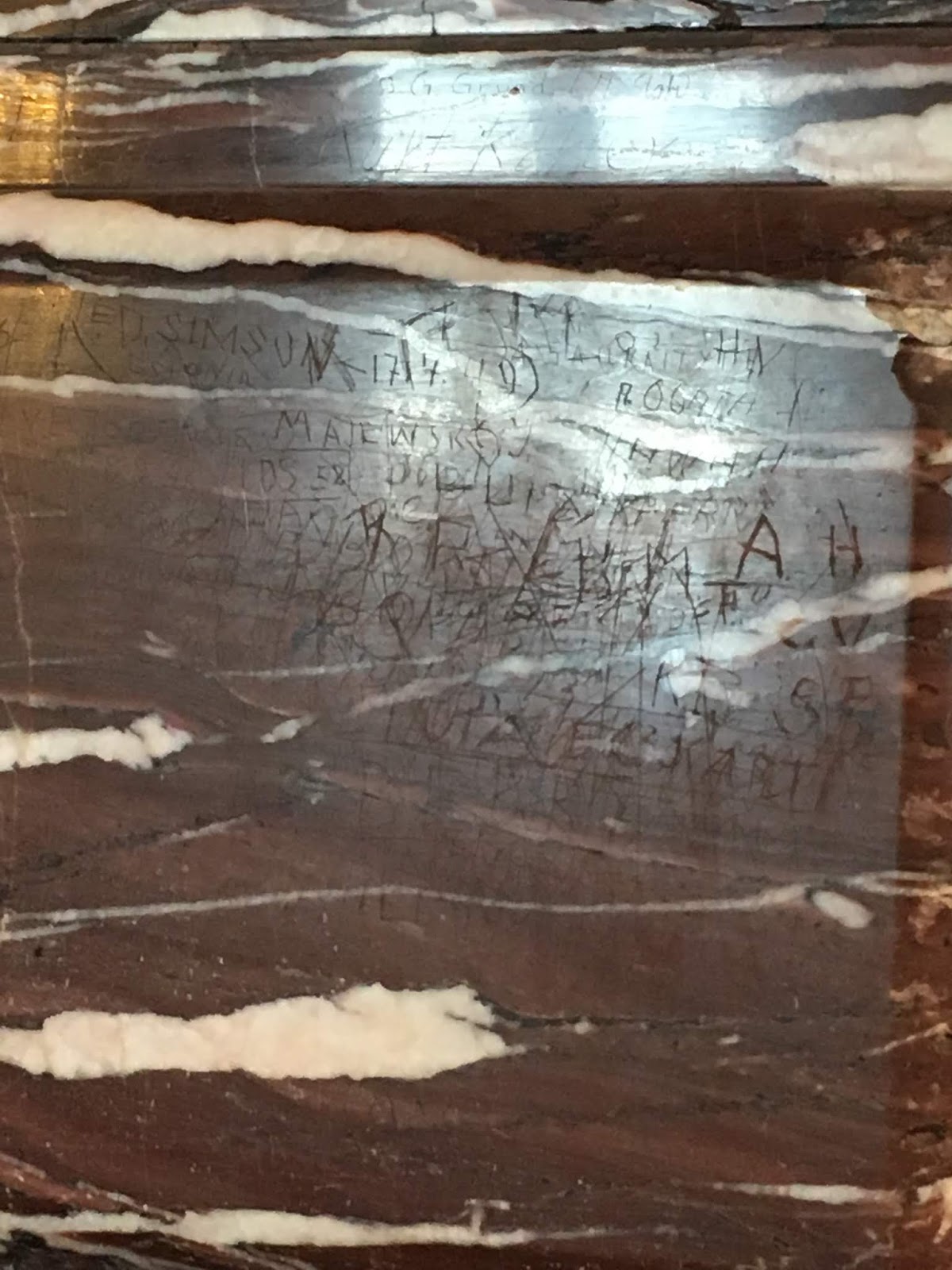 These are markings on the door to Eagle's Nest that were left by Allied Forces when they arrived.